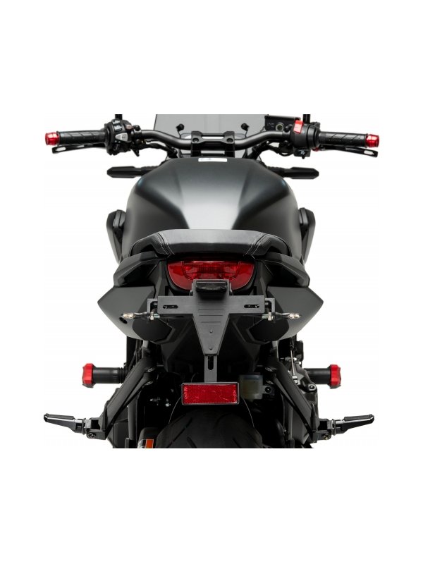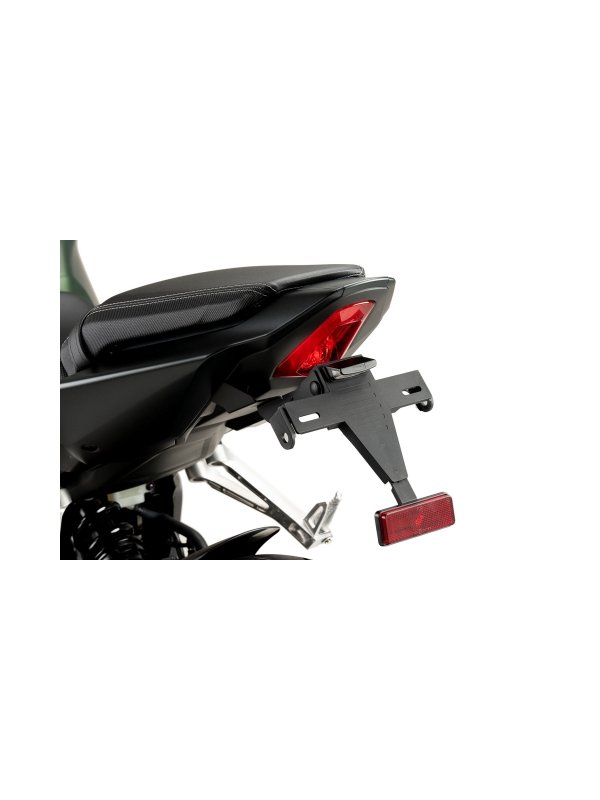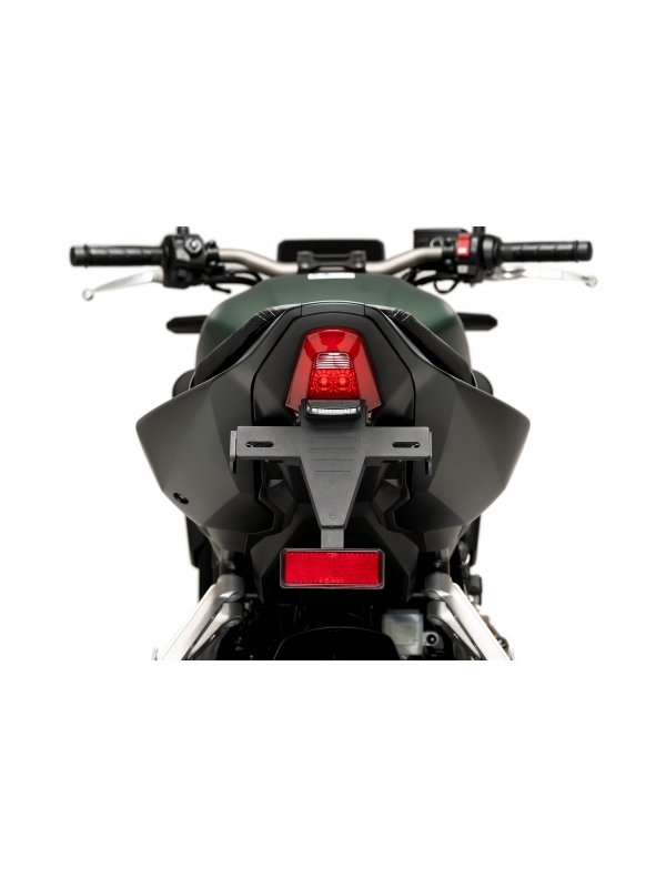 Стойка за регистрационен номер Puig , която да замени оригиналната такава. Стойката Puig е с по-повдигната позиция спрямо оригиналната, което ще придаде на вашия мотоциклет по-спортен вид.