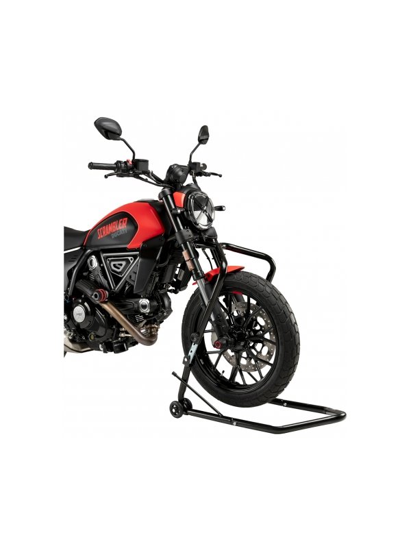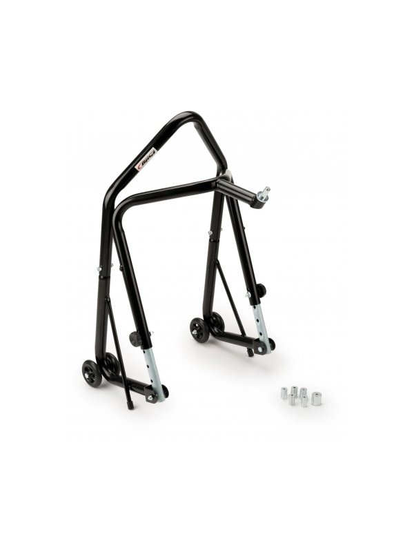 The front stand support of Puig is designed to park the bike comfortably and be able to perform maintenance tasks safely. Available in black, it is a universal support and easily foldable, which facilitates its storage. Supplied with brackets for 13 mm, 15 mm, 16.5 mm, 17 mm and 18 mm axles.