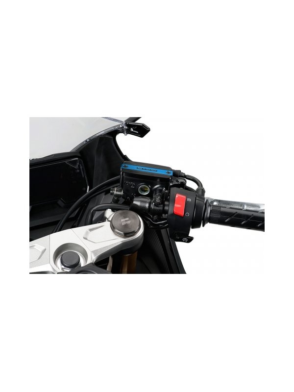 Метален капак за резервоара за течността на съединителя в черен цвят с цветна лента, който да осигури допълнителна защита и да направи мотоциклета ви да изглежда още по-добре.