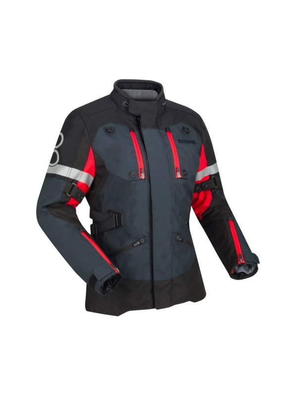 Якета Halifax - високо качество текстил, сваляема водонепромокаема BWTECH Mega мембрана, вентилационна ADS система с Fidlock® магнитни закопчалки, сваляема термо подплата, множесто възможности за регулиране ширината при китките, ръкавите и кръста, няколко на брой практични джобове, стилна линия и кройка, протектори за рамената и лактите, комфортно и добре прилепващо към тялото, подходящо за всеки сезон, предназначено за тези, които търсят висок клас мотоциклетна екипировка.