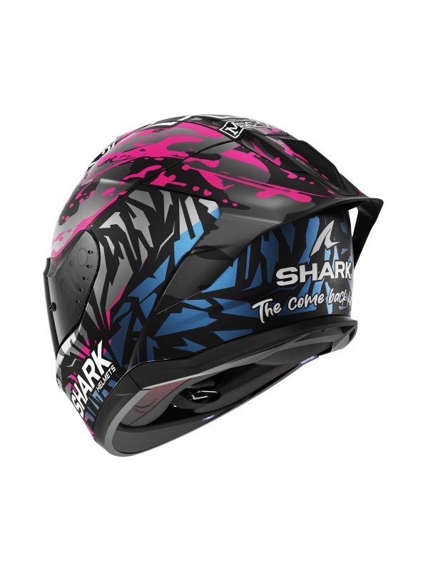 Уникалният спойлер в задната част е в основата на визуалната рейсинг идентичност на каската, но също така пак той е това, което й придава истинска аеродинамична стабилност, което е и най-значимoто при този тип каски. Оптимизиран във всеки един аспект.