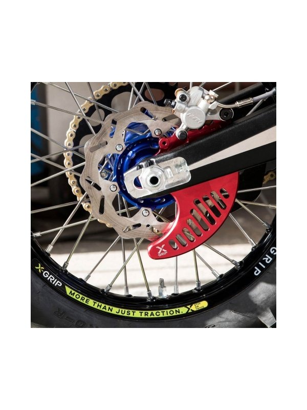 Предпазител за заден диск, който ще замести съпорта на задния спирачен апарат и ще осигури максимум защита за задния диск.